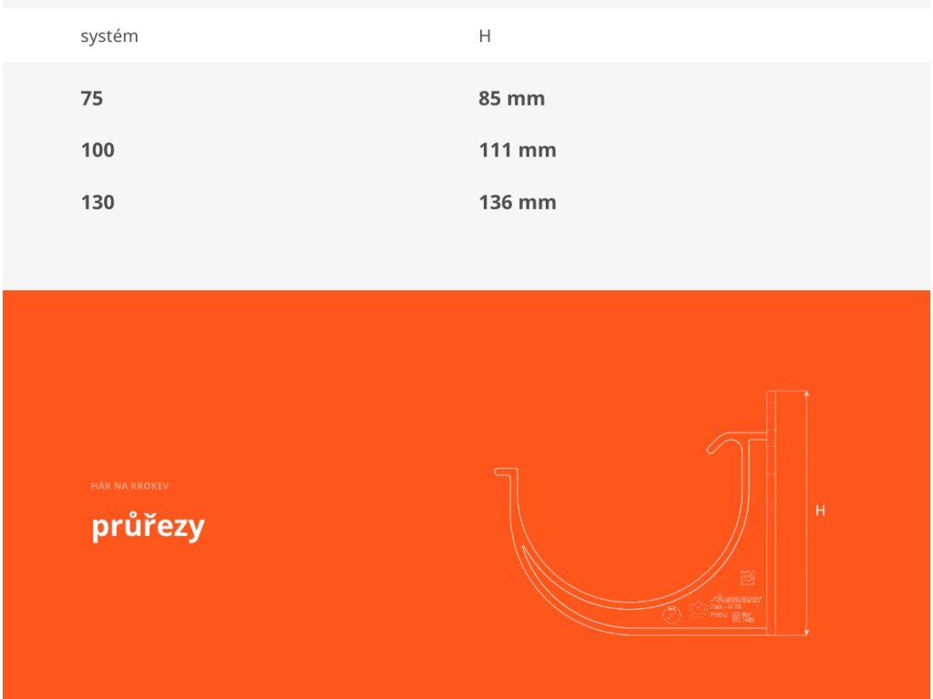 KROP PVC hák čelový 75